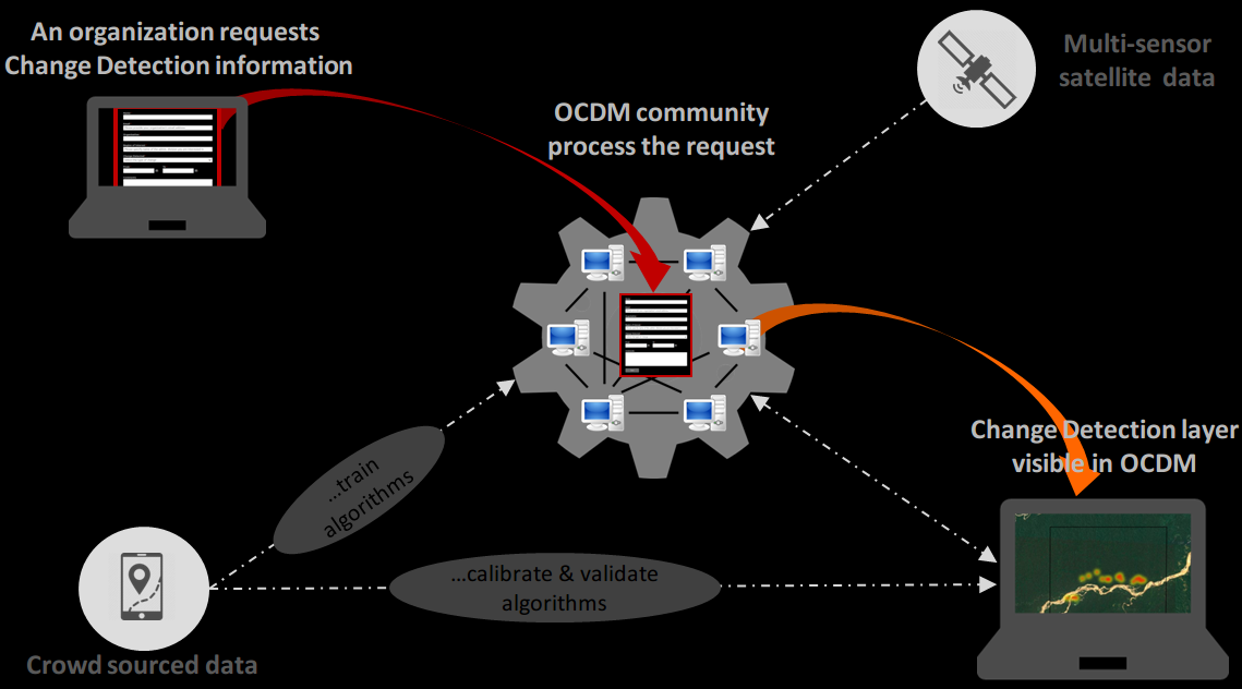 If OpenStreetMap community is succesfully mapping the world, OCDM community may succesfully map changes in the world. By enhancing collaboration between the Big Earth Data community and citizens, OCDM aims to solve two problems: